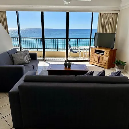 Two Bedroom Ocean View Penthouse At Pelican Sands Gold Coast, un appartamento con 2 camere da letto, si trova nel quartiere Bang Raka 6 km da Point Danger e offre una jacuzzi e una sauna. Quest'appartamento dispone di una terrazza che permette agli ospiti di godere di una vista sulla spiaggia sul mare.